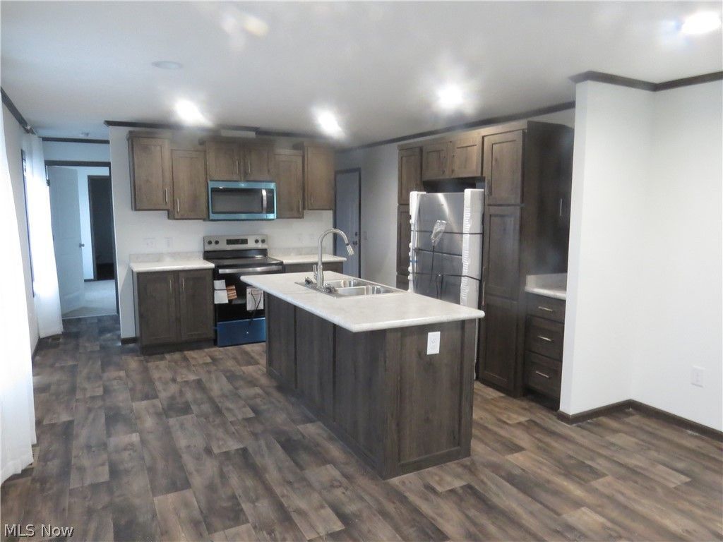 Brand new manufactured home offering 3 bedrooms, 2 full bathrooms, and 1,140 sq ft of comfortable living space. The carpeted primary bedroom features a ceiling fan, walk-in closet, and private bath with walk-in shower. Open concept floor plan. The kitchen is well appointed with two pantry cabinets, an island with sink, and a stainless steel appliance package including electric range, refrigerator, microwave, and dishwasher. Thoughtfully designed layout with modern finishes throughout. Home includes a drape package and 2 mini blinds for added convenience.